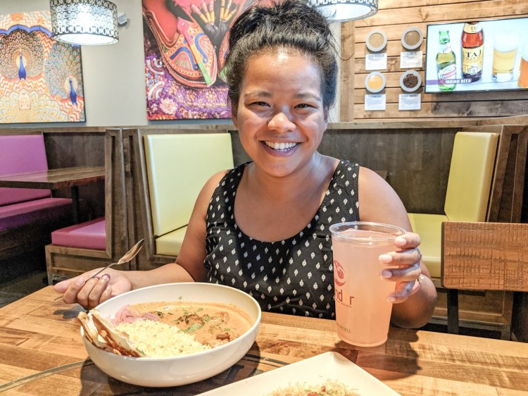 The GM recommended the Samosa Chaat, and we’ve also heard a lot about the Tandur Naanchos. With all of the usual heavy hitter flavors and spices that are often associated with Indian cuisine, the chaat was light and refreshing–especially in contrast to the naanchos. Both were great shareables, but we would recommend only getting one of the three if still ordering a biryani bowl! They call their starters: “Small Plates” but there’s nothing small about the portion sizes!