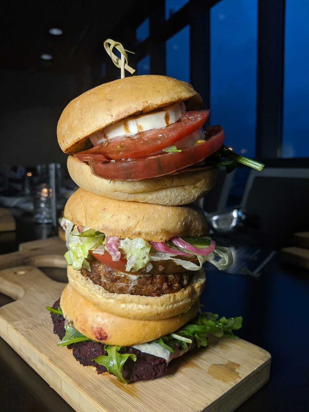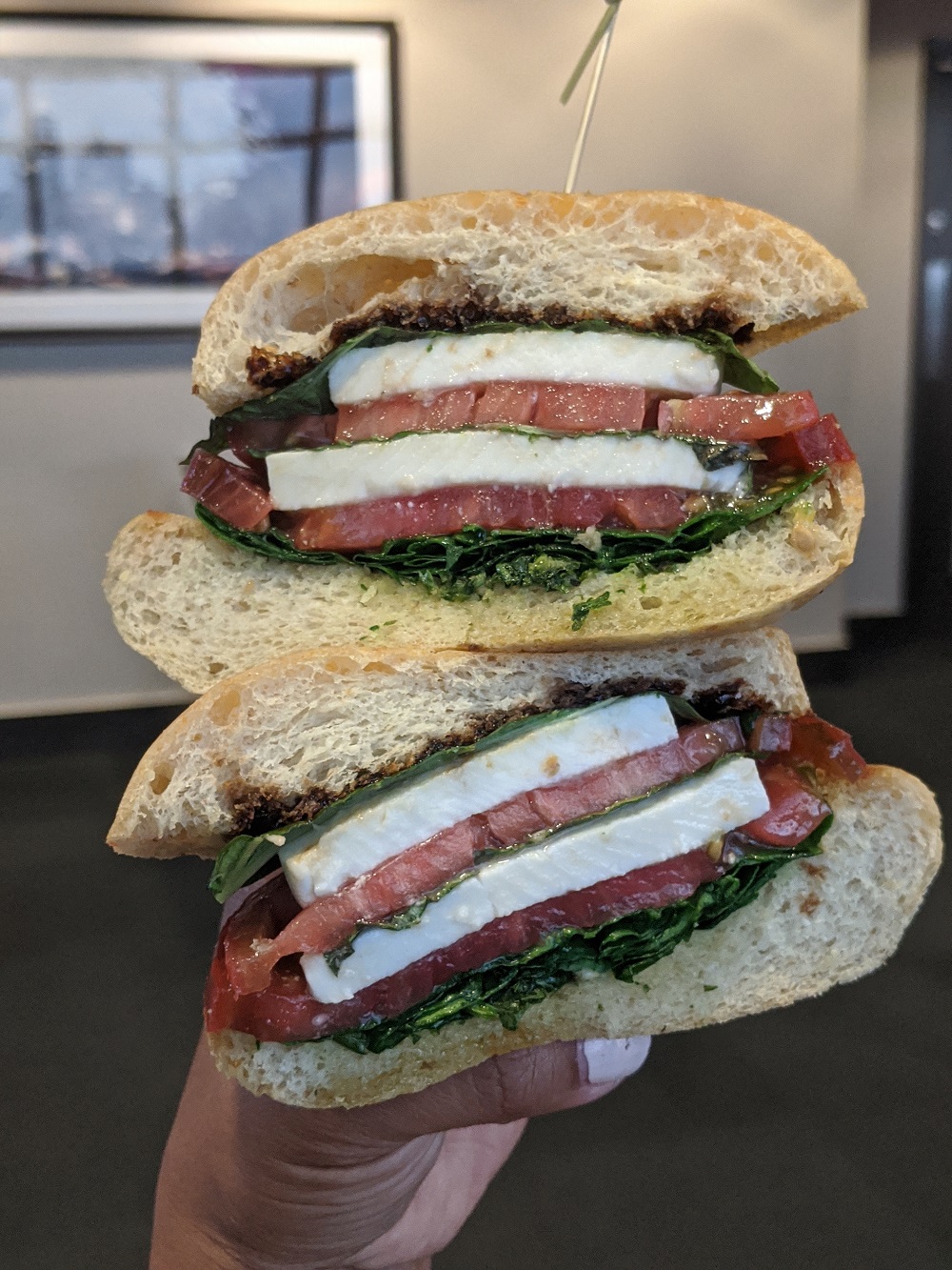 Here are some of their current offerings at Fahrenheit: the caprese sandwich, an Impossible burger, and a red bean-beet veggie burger.