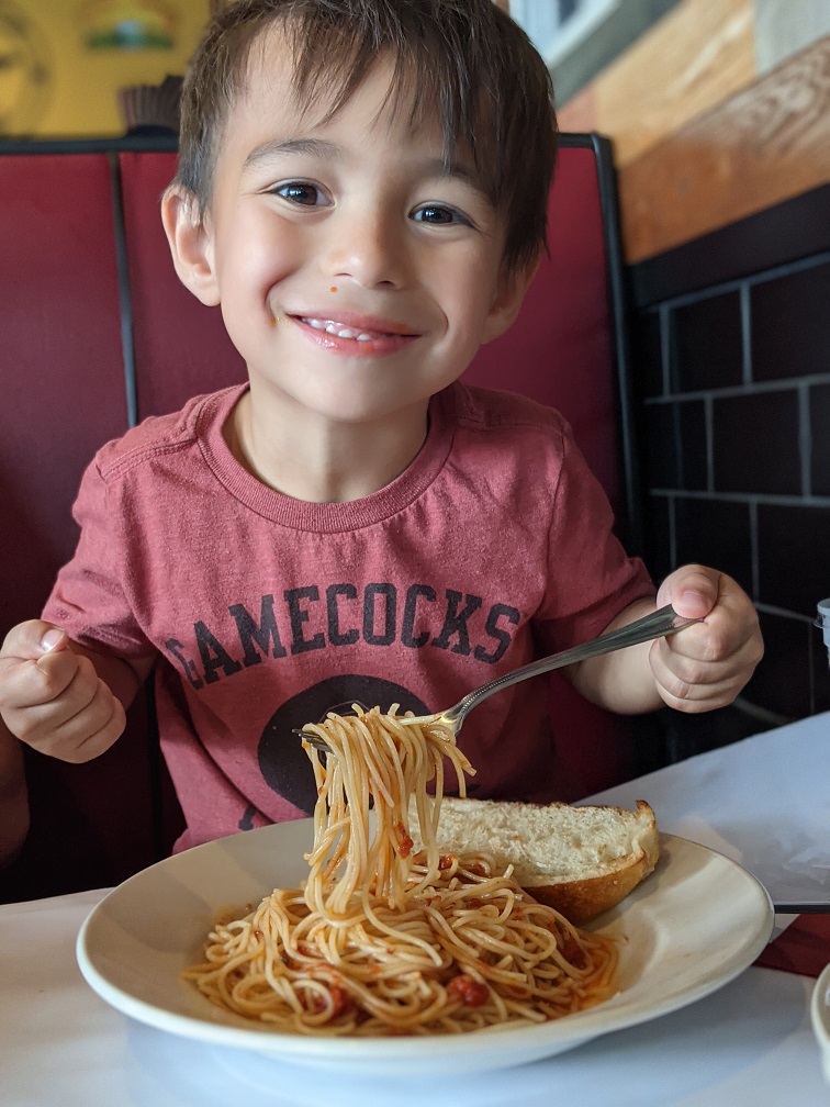 We’ve enjoyed Hawthorne’s for take-out many times over throughout this pandemic. Their DIY pizza kit is a fun dinner idea–perfect for families or even as a date night in idea! On Tuesdays, kids eat free and the deal applies to take-home orders, too. And well…we finally decided to brave inside dining as a family (with Grayson included), and Hawthorne’s was our first try out! We appreciated so much that they had so many COVID measures in place like every other table spaced out, bagged/covered cutlery, QR code menus, mask enforcement, and social distancing markers! So not only did we get to enjoy our great tasting lunch–we also could feel safe!