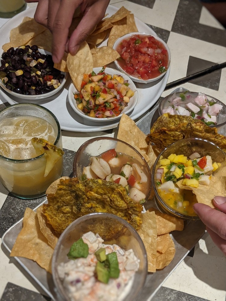 Of course, you have to get the ceviche–and you won’t regret ordering the sampler to get a little bit of everything. Loved that their Caribbean fried oysters had a curry aioli for a slightly unexpected surprise! The fried calamari had some fried banana peppers too and topped with cotiija and a sriracha aioli—it’s definitely one of the best calamari dishes we’ve ever had. The guys’ favorite was the carne empanada. The guac and cotija was the perfect refreshing compliment to the jalapeno aioli sauce that came with it. So, long story short–we had an amazing dinner. We had intended to eat out on the patio but honestly they were very well socially distanced tables indoors and there were less diners inside that we felt as safe as one could feel during these times! 10 out of 10 would highly recommend Ceviche’s.