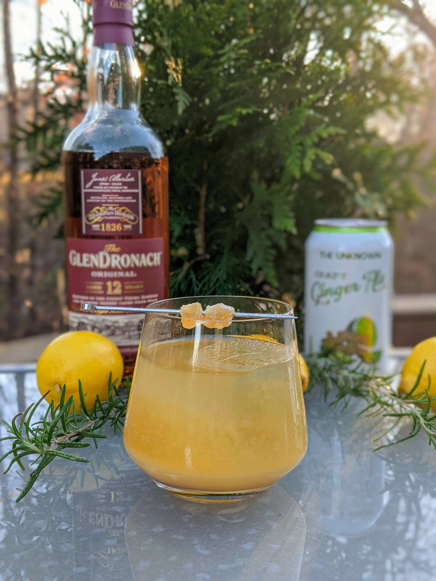 Combine all ingredients except for ginger ale into shaker and shake with ice. Strain into rocks glass filled with ice. Top off with Unknown Craft ginger ale.