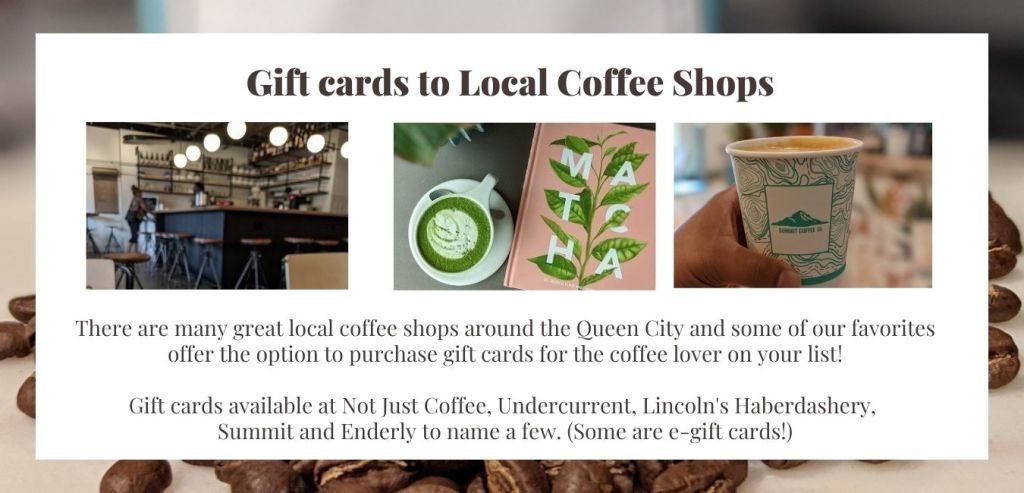 In any case, everybody sure has at least some family member or friend that is a COFFEE LOVER and so for our first holiday gifting guide in the Queen City, we would like to highlight some LOCAL businesses that you should check out so you can curate the perfect gift for them. Yes, a Starbucks gift card would be convenient since there’s basically a shop at every corner BUT y’all–the Queen City has some of the most amazing local coffee shops in every neighborhood and there are several markets that carry locally roasted coffee beans and many other accompaniments to that perfect morning brew.