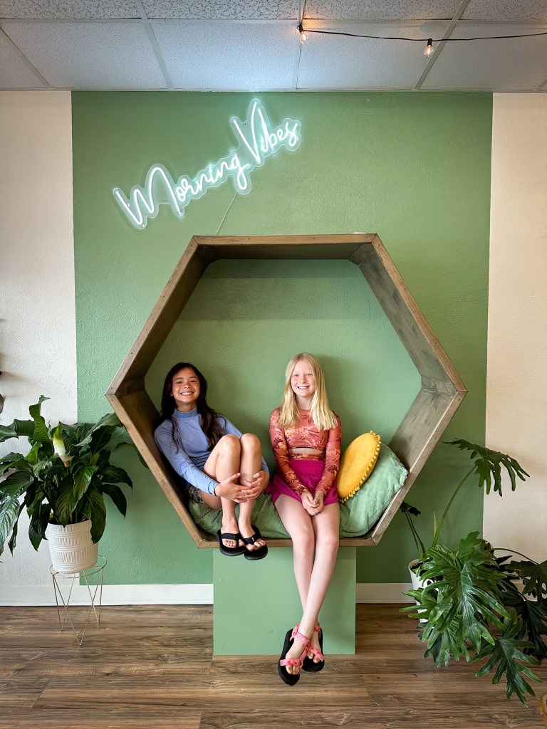 This has to be our latest fave spot in Surfside Beach–they’re serving up chill vibes, great breakfast, delicious pastries, and great coffee PLUS they also have a cute shop of curated home goods, gifts, and PLANTS!!!